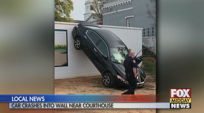 Car Wreck Leaves Vehicle On Wall Near Bennettsville Courthouse